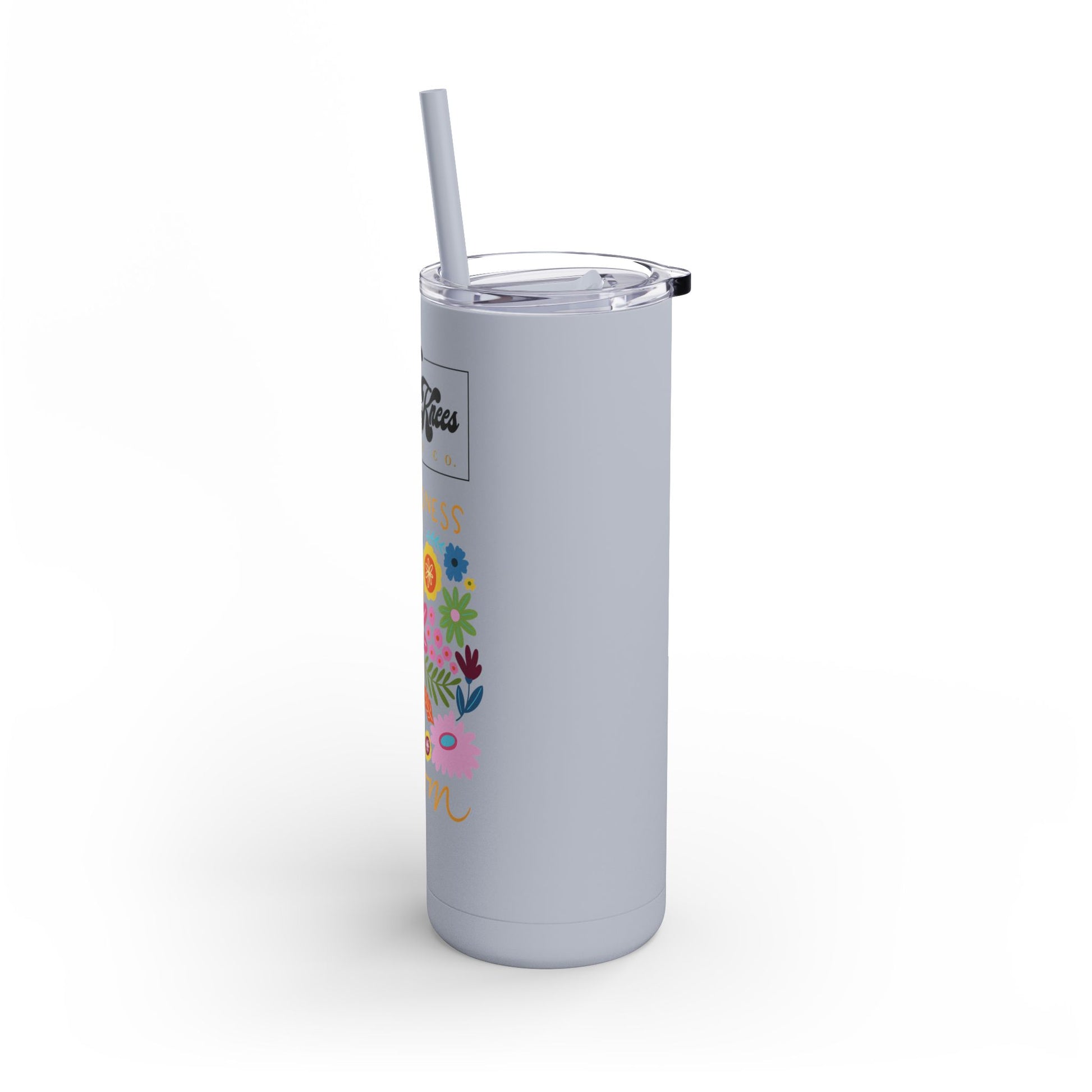Introducing this sleek and stylish 20oz Skinny Tumbler, perfect for those who love to enjoy their beverages in style. The vibrant artwork, featuring uplifting floral designs, adds a touch of positivity and charm. Ideal for busy mornings, relaxing afternoons, or late-night sips, this tumbler fits seamlessly into any lifestyle. It’s perfect for anyone who values both function and fashion, making it a great gift for friends, family, or even yourself! This product is especially relevant during holidays like Mother's Day, Earth Day, or any celebration that calls for a little extra cheer. Embrace life’s moments with this beautiful tumbler, designed to inspire kindness and joy with every sip.